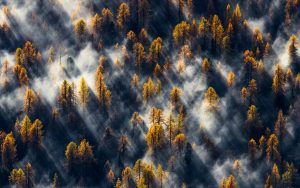 Nell’ultimo controluce del giorno, quando il sole si ritira esitante, piccole particelle d’acqua danzano nella nebbia di una cascata impetuosa. Queste gocce sospese catturano la luce e la trasformano in raggi visibili – come linee disegnate su una tela nascosta.