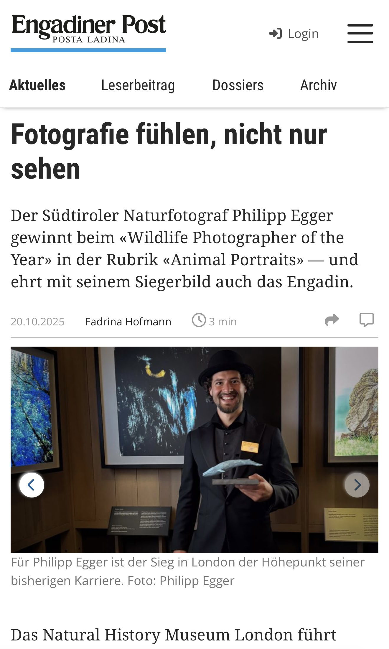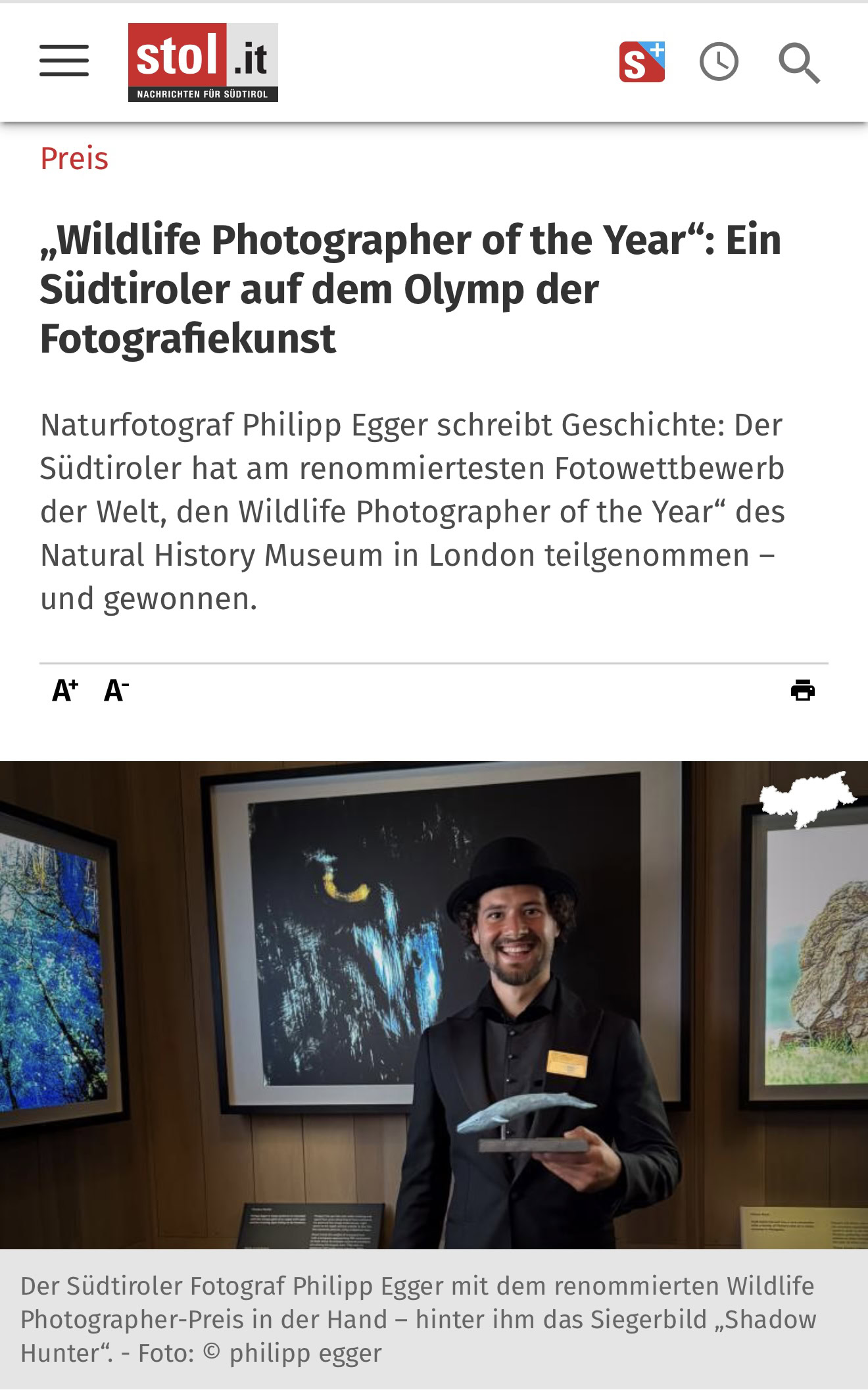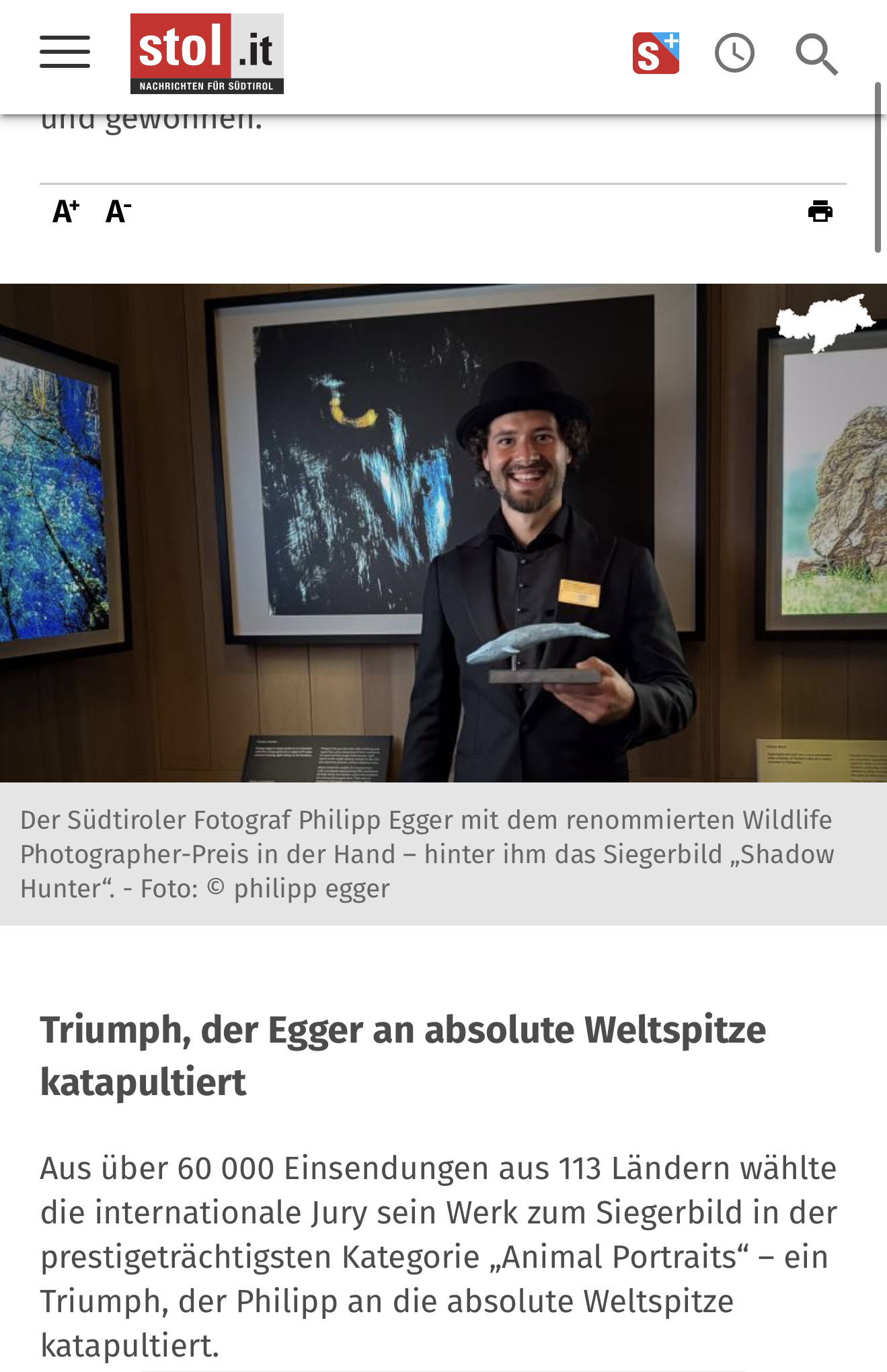 Dieses Werk wurde beim Wildlife Photographer of the Year in der prestigeträchtigsten Kategorie “Animals Portraits” zum Gewinner gekürt – dem bedeutendsten Naturfotowettbewerb der Welt. Es reiste um den Globus, wurde auf allen Kontinenten ausgestellt – in den größten Naturkundemuseen, Galerien und Kulturzentren von London bis Kapstadt, von New York bis Sydney. Ein stiller Botschafter der Wildnis.
