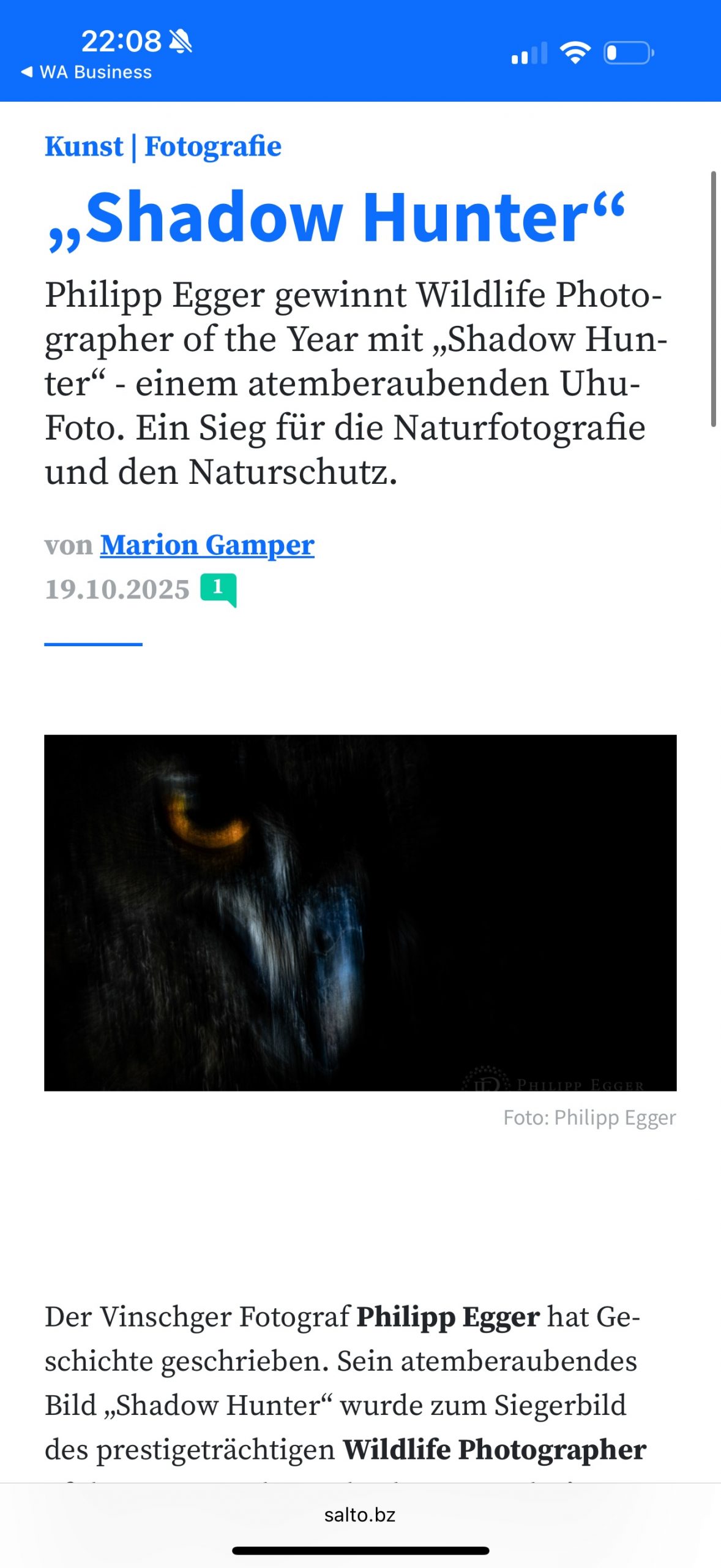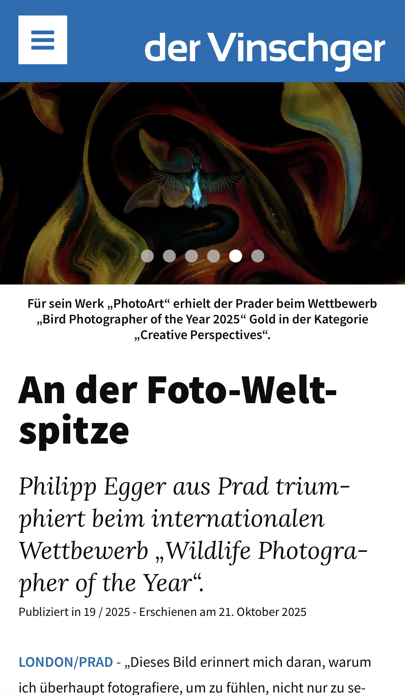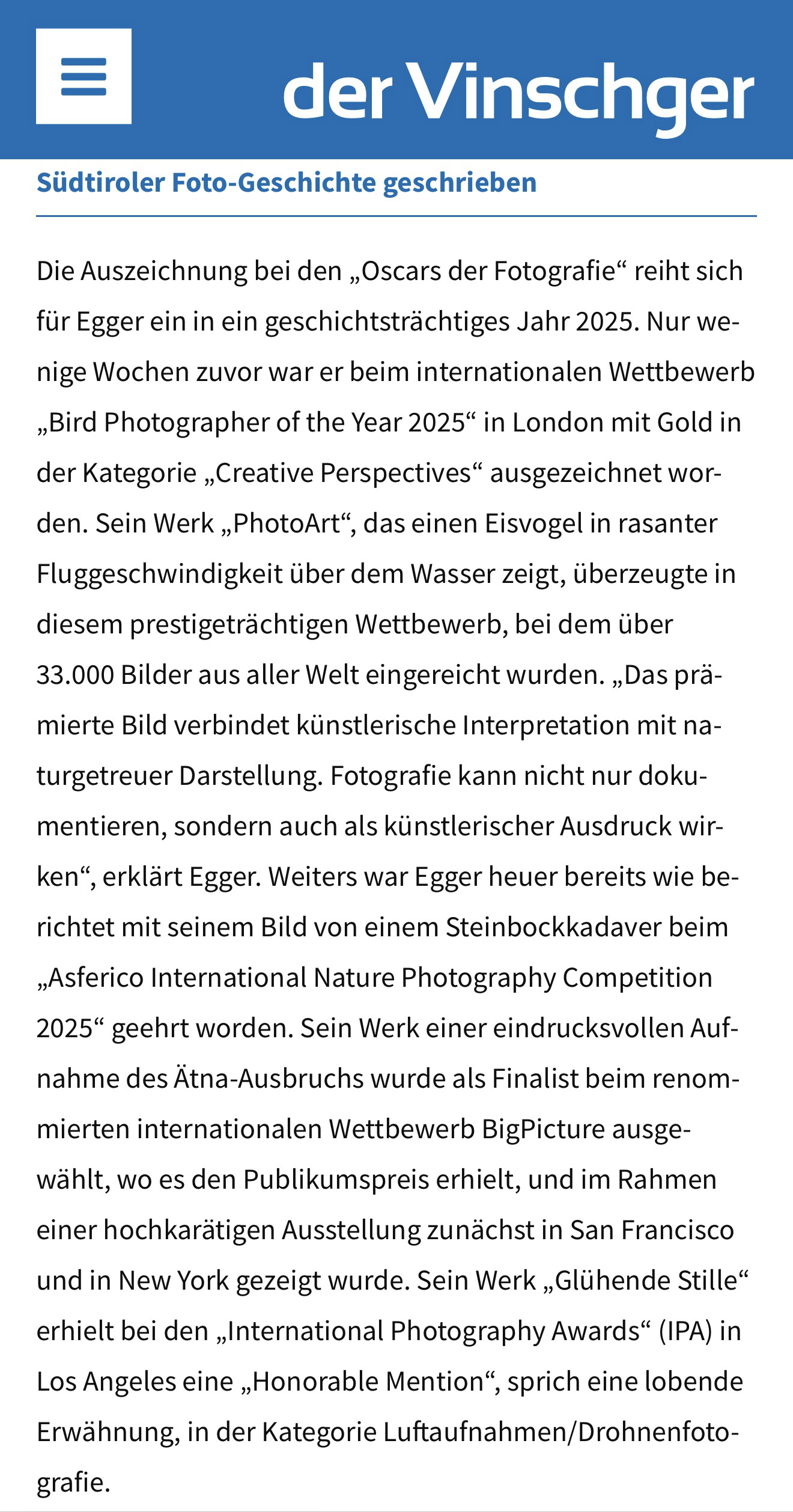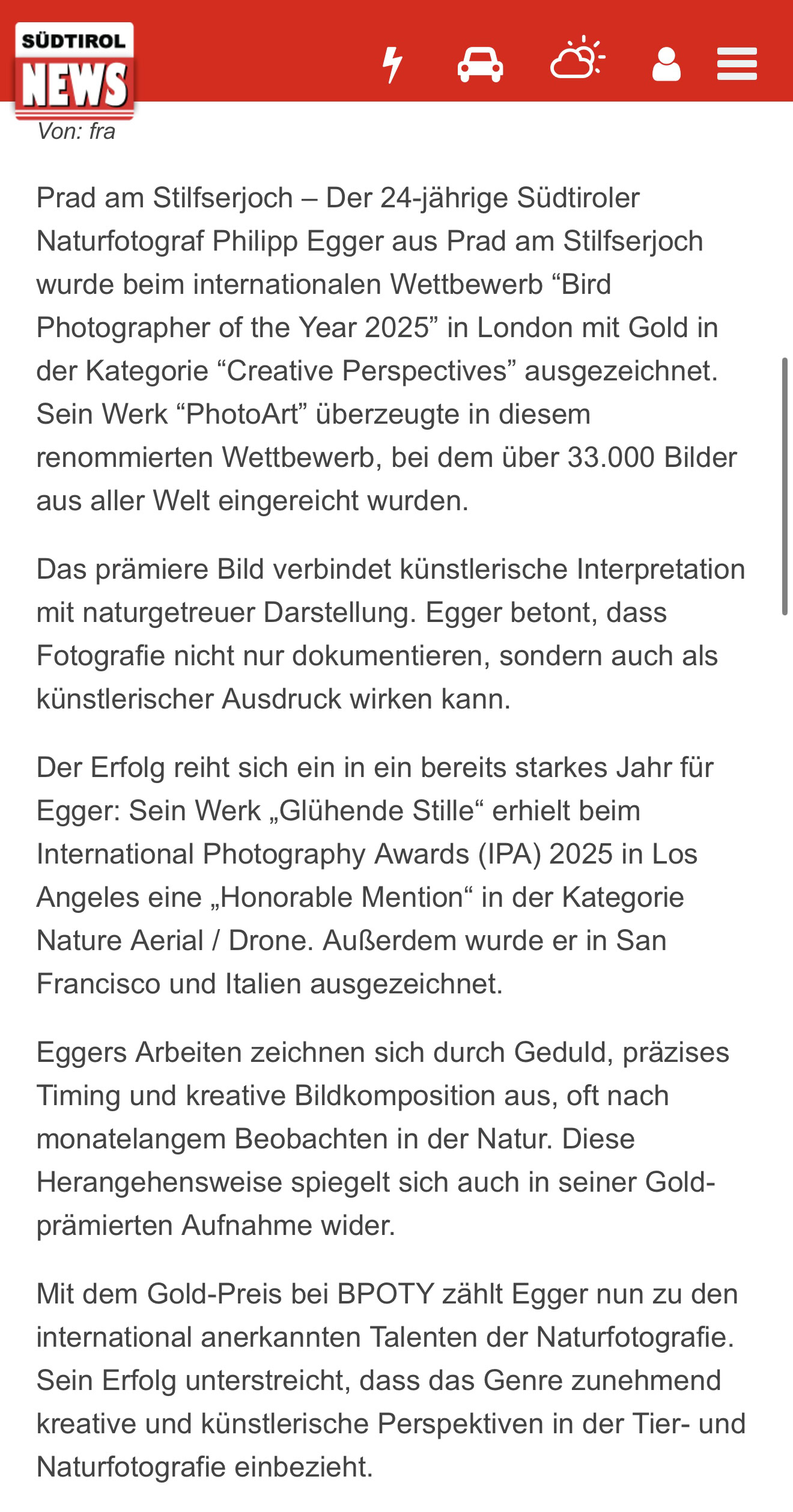 Diese Aufnahme wurde beim international renommierten Wettbewerb Bird Photographer of the Year ausgezeichnet – dem weltweit bedeutendsten Preis für Vogelfotografie.