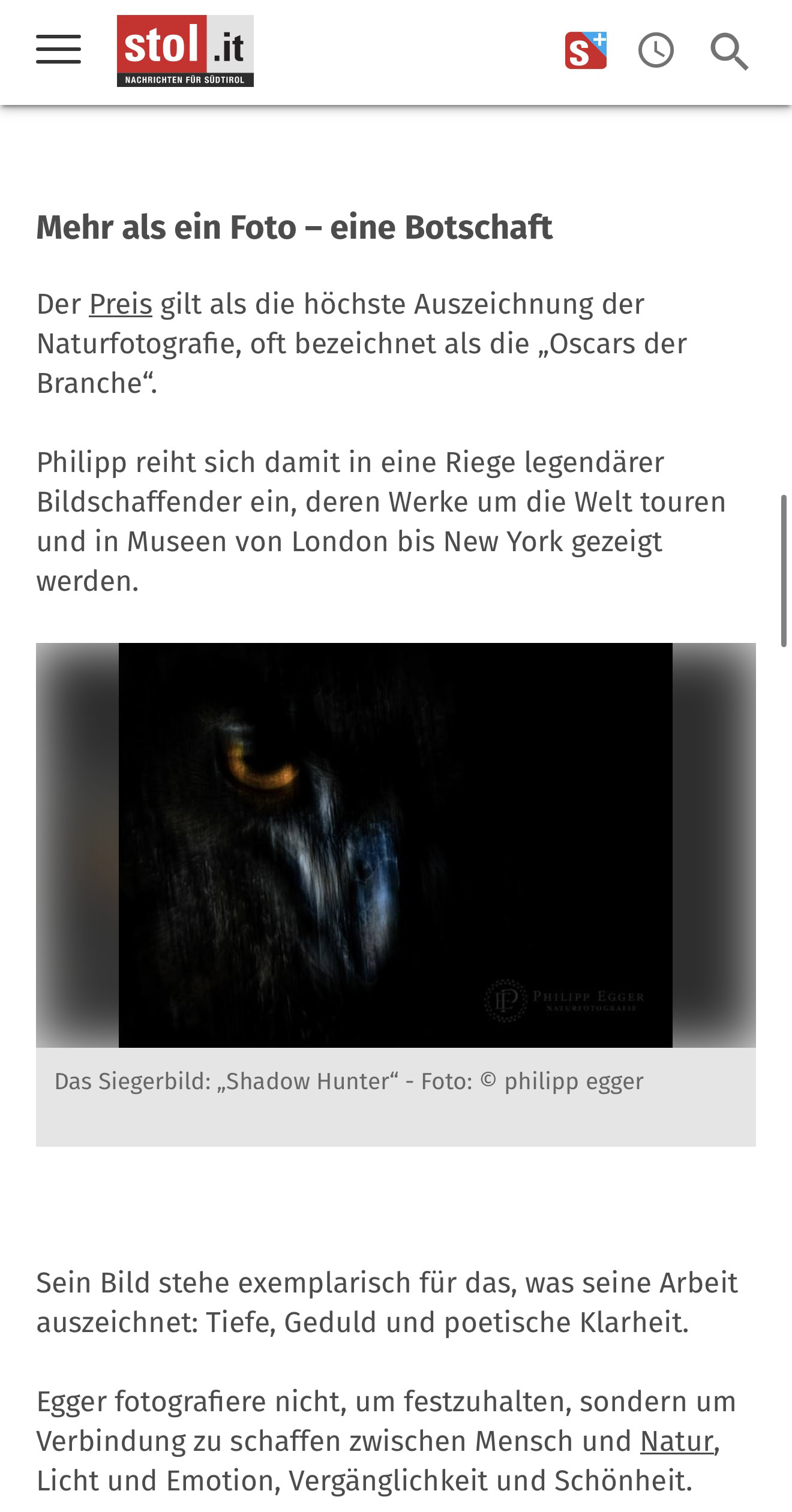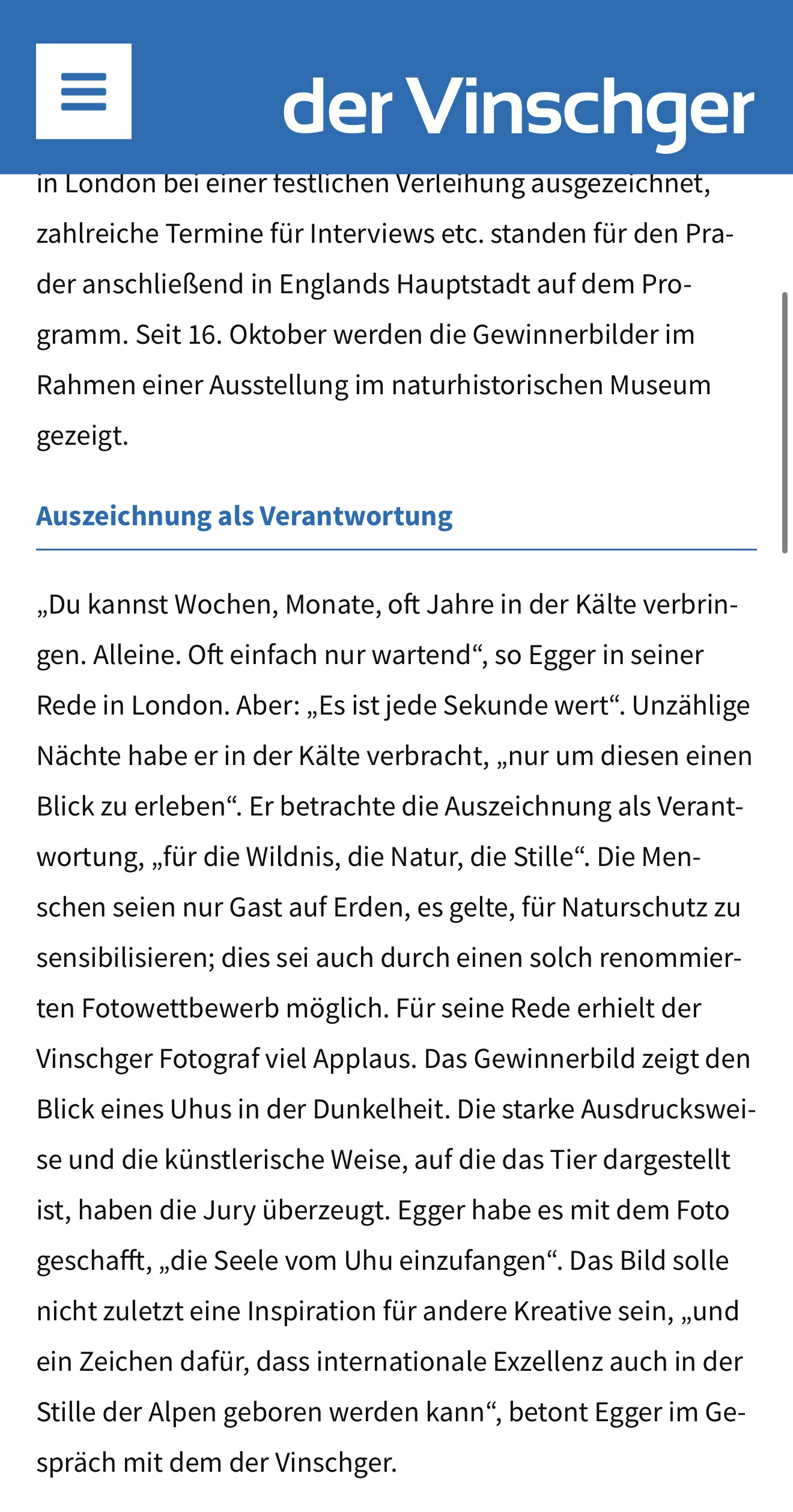 Diese Aufnahme wurde bei zwei der bedeutendsten Naturfotowettbewerbe der Welt ausgezeichnet: bei der Asferico International Nature Photography Competition in Italien und beim GDT-Wettbewerb „Europäischer Naturfotograf des Jahres“.