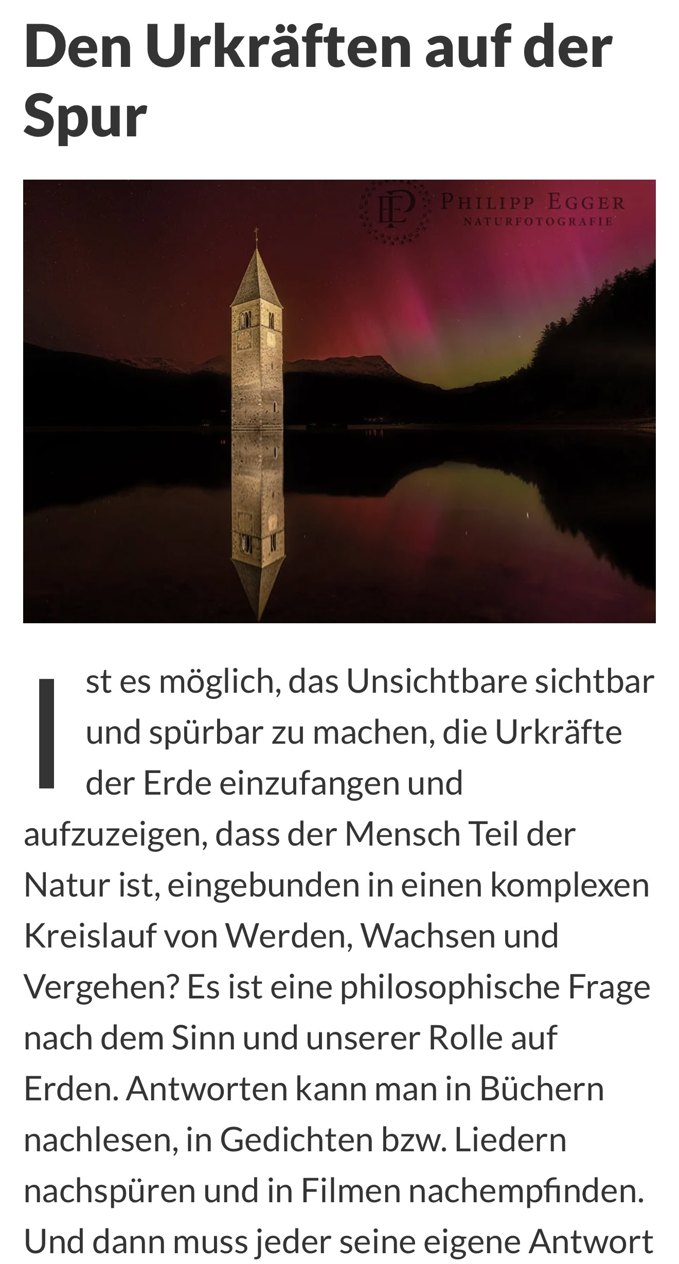 Die Natur ist für mich keine Kulisse, sondern eine lebendige Seele. In der Einsamkeit der Alpen, auf Gletscherpfaden und in uralten Wäldern suche ich nicht das Spektakel – sondern jene flüchtigen Augenblicke, in denen die Welt sich offenbart. Jedes Bild, das ich schaffe, ist mehr als Fotografie. Es ist ein stilles Gebet, ein Akt des Zuhörens, ein Versuch, das Unsichtbare sichtbar zu machen.