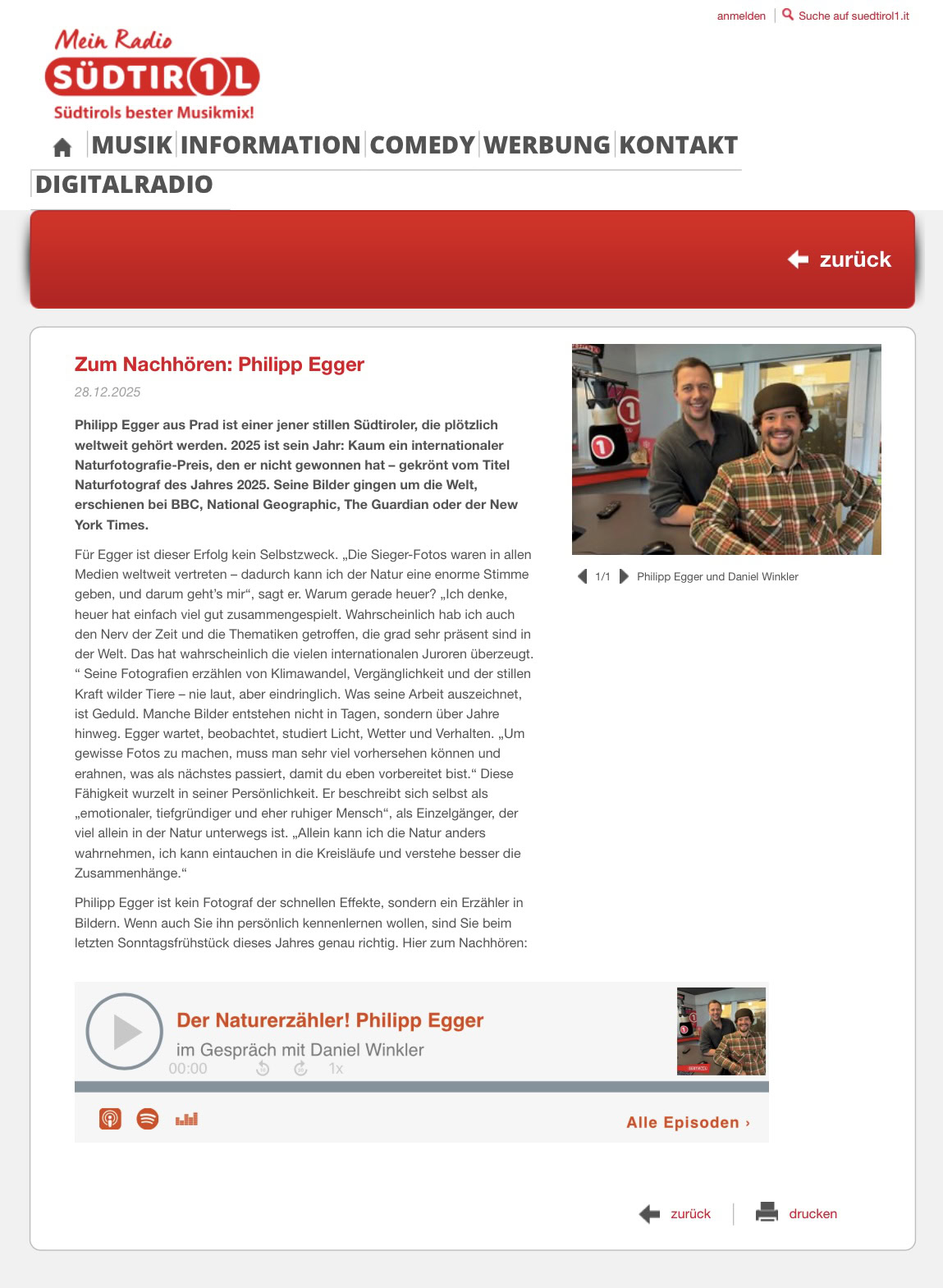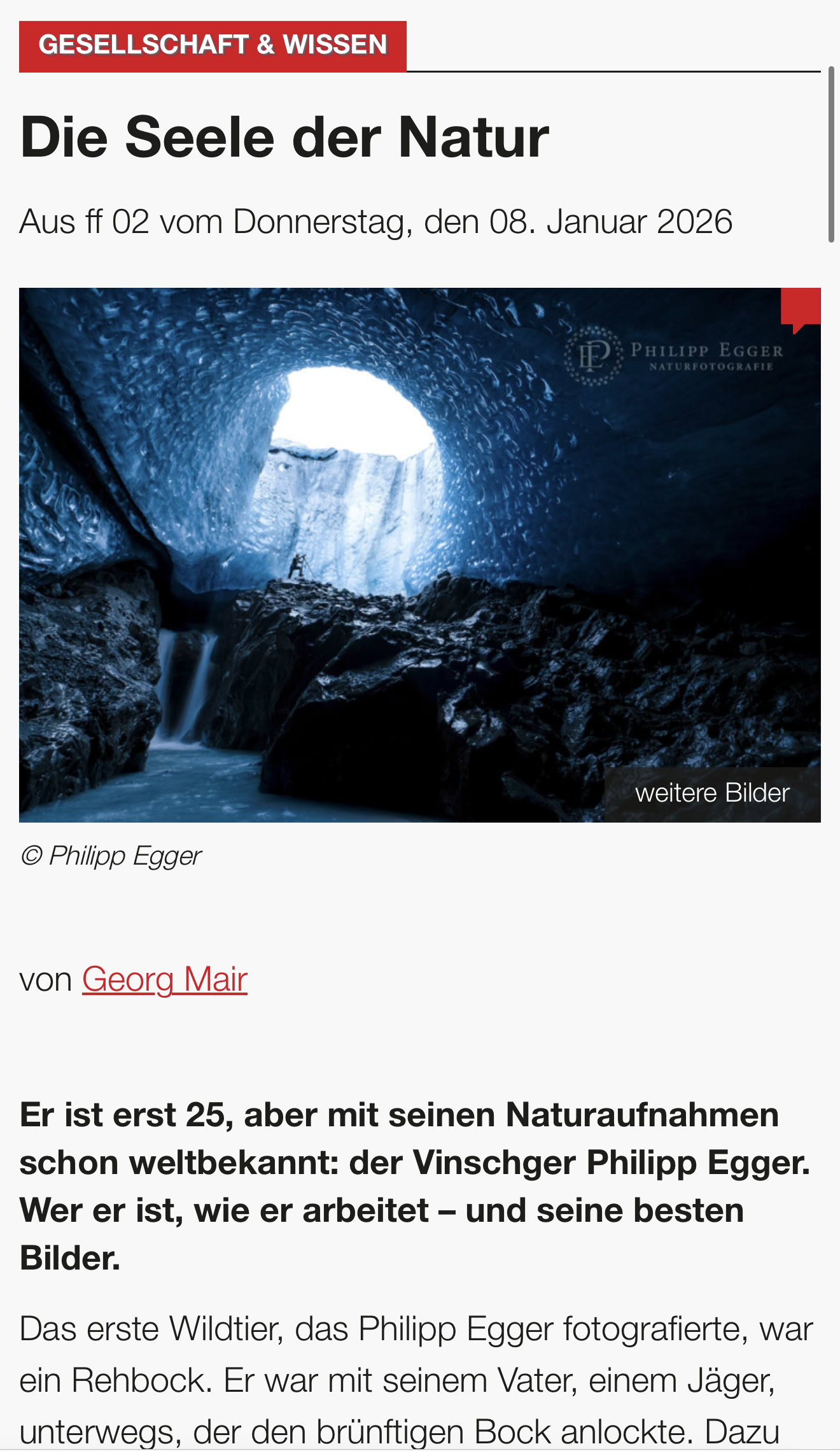 Le mie opere nascono da dedizione, pazienza e presenza fisica. Trascorro settimane, mesi, a volte anni in un solo luogo, in attesa di quell’istante in cui tutto si compone. Questa profondità vive nelle mie fotografie e nei miei film – esposti in tutto il mondo, premiati nei concorsi più prestigiosi. Come cameraman per documentari come ORF-Universum, porto sullo schermo la poesia nascosta della natura selvaggia.