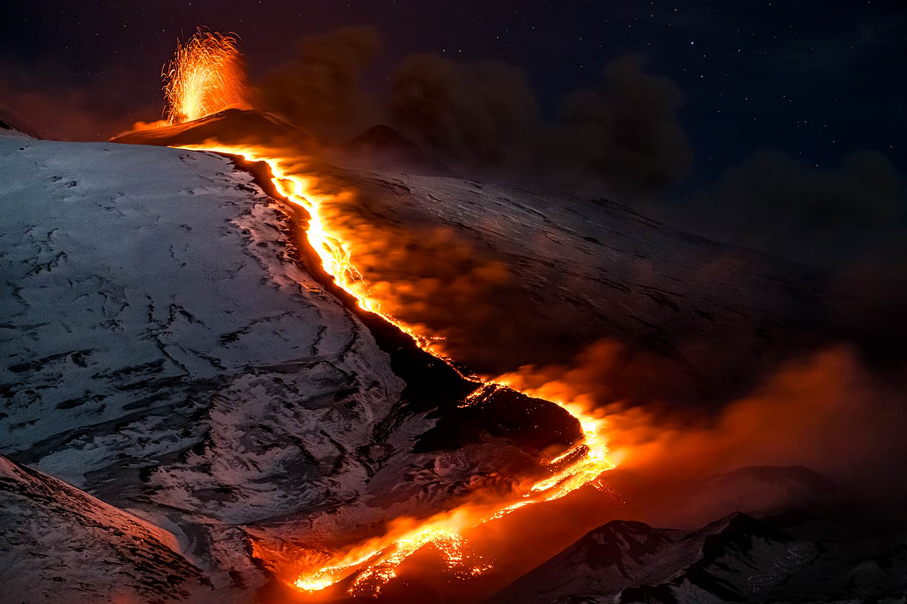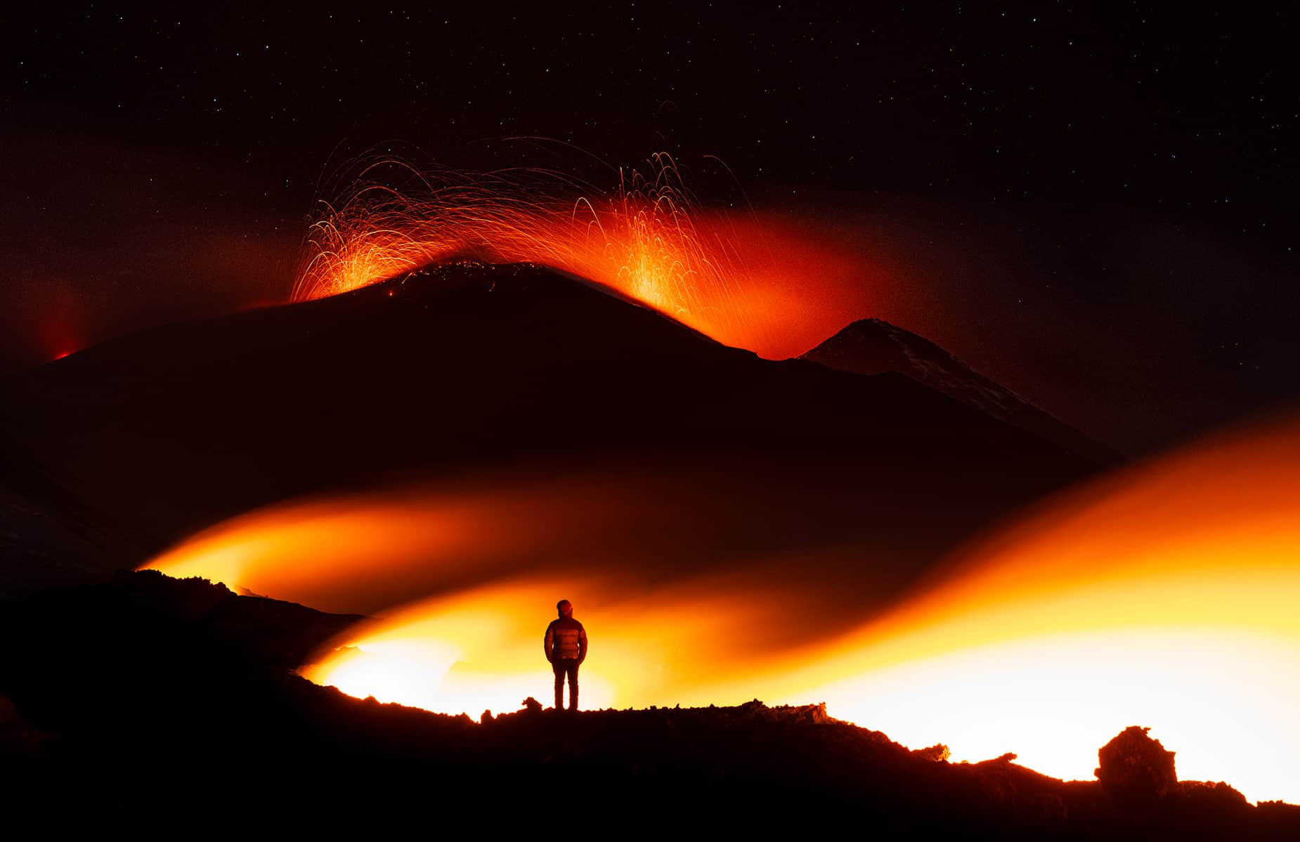 Die andere führt dorthin, wo Landschaften sich bewegen, wo Hitze, Licht und Risiko aufeinandertreffen. In eine Welt aus Glut, an den Entstehungsort von Mutter Erde.