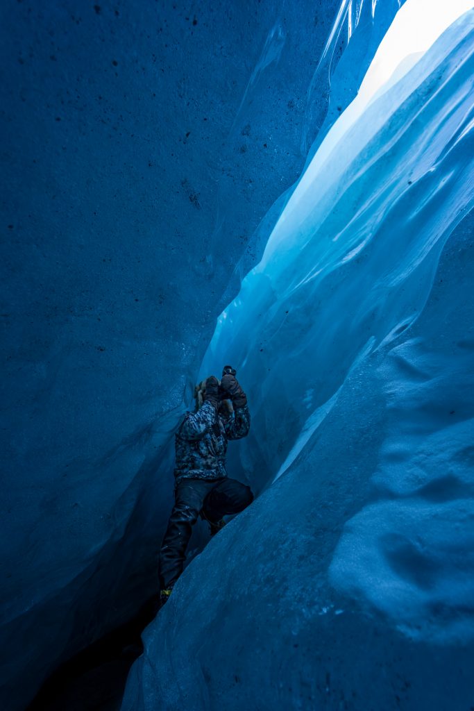 High above, where the mountains touch the sky, a waterfall begins its relentless journey. Fed by the glacier, it plunges with untamed force through a narrow gorge, carving its path through rock and time, carrying the voice of the ice down into the world. Yet this waterfall holds a secret – visible only in the fleeting harmony of season, sunlight, and perspective.