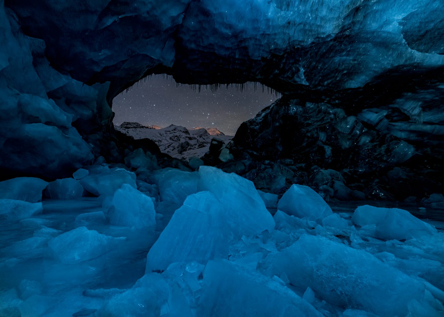 When the glacier releases its meltwater in full abundance, the gorge roars with thunderous life. Mist rises from the countless cascading drops, swirling like an invisible breath between the rock walls. It’s as if nature itself holds its breath, preparing for a miracle. Only for a brief moment each year – just one single week – the sun reaches the perfect position in the sky. Its rays, golden and slanted, pierce into the depths of the gorge, illuminating the rising mist and igniting a spectacle unlike any other.