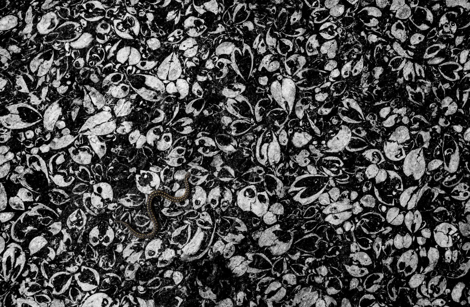 Then, one day, I witnessed something that surpassed all I had seen before. As I approached the slab, I caught a glimpse of movement—smooth and silent, a viper slid across the fossil patterns. Its slender, dark-patterned body rested among the ancient forms as if it were part of the artwork itself, shaped by the hand of time. The viper, one of the most venomous snakes in the Alps, lay on the stone with an elegance that felt almost reverent, as if it understood the spirit of the place.